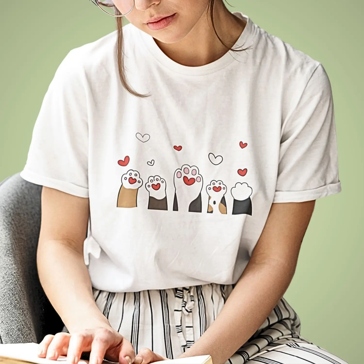 A Camiseta Cat Paws and Hearts foi feita para quem é apaixonado por felinos e quer expressar esse carinho com estilo.
