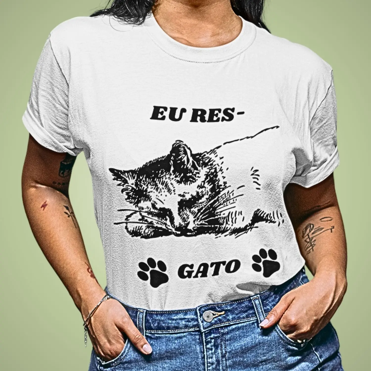 Feita para quem se importa, a Camiseta Eu Res-Gato traz frases e imagens que expressam amor pelos animais e respeito pelo planeta.