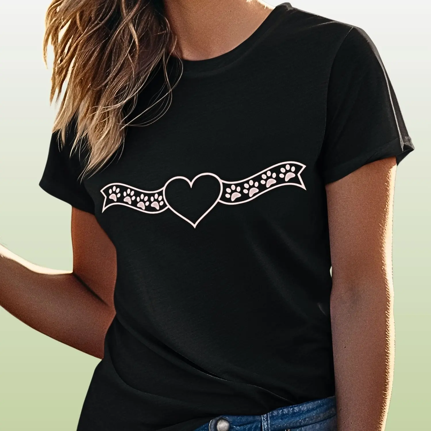 Feita para quem se importa, a Camiseta Fita Coração Patinhas traz frases e imagens que expressam amor pelos animais e respeito pelo planeta.