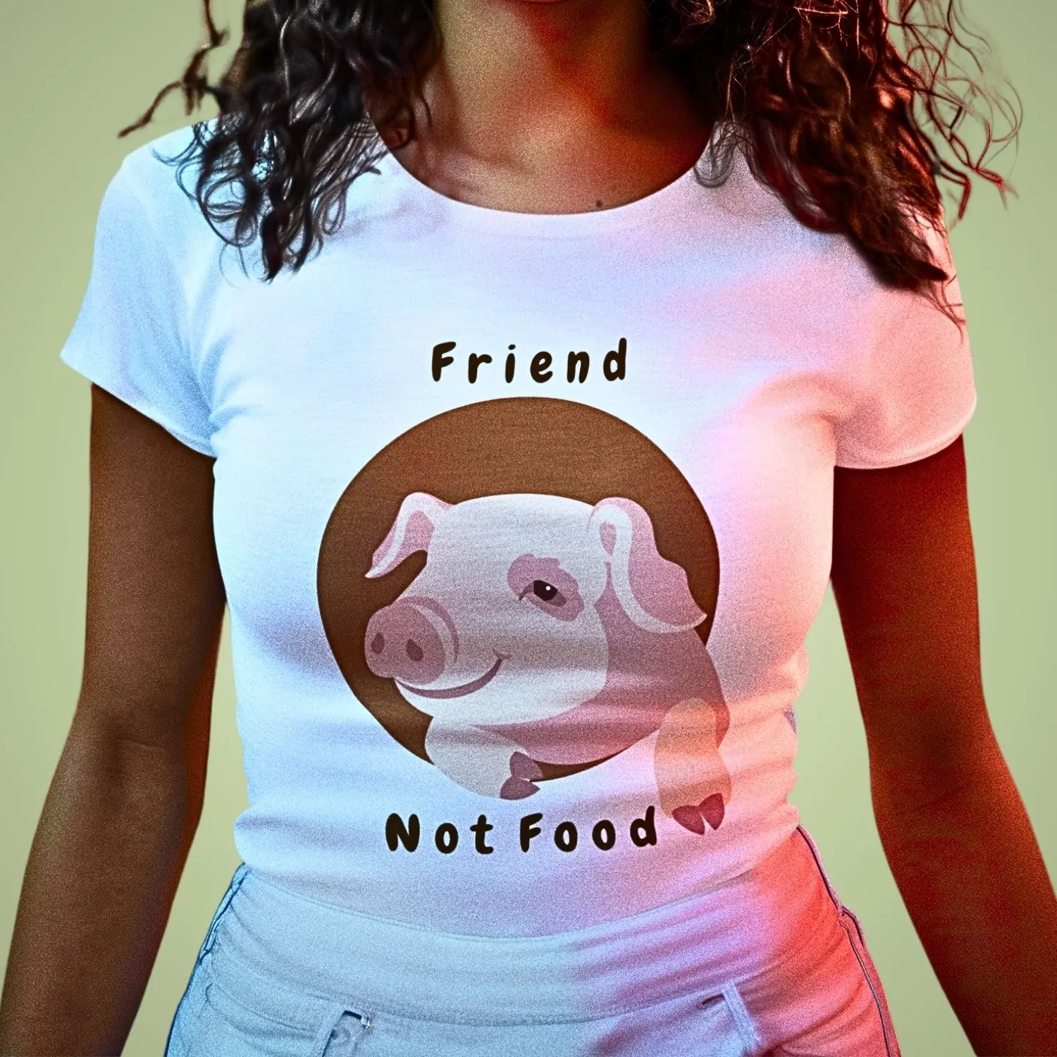 Feita para quem se importa, a Camiseta Friend not Food traz frases e imagens que expressam amor pelos animais e respeito pelo planeta.