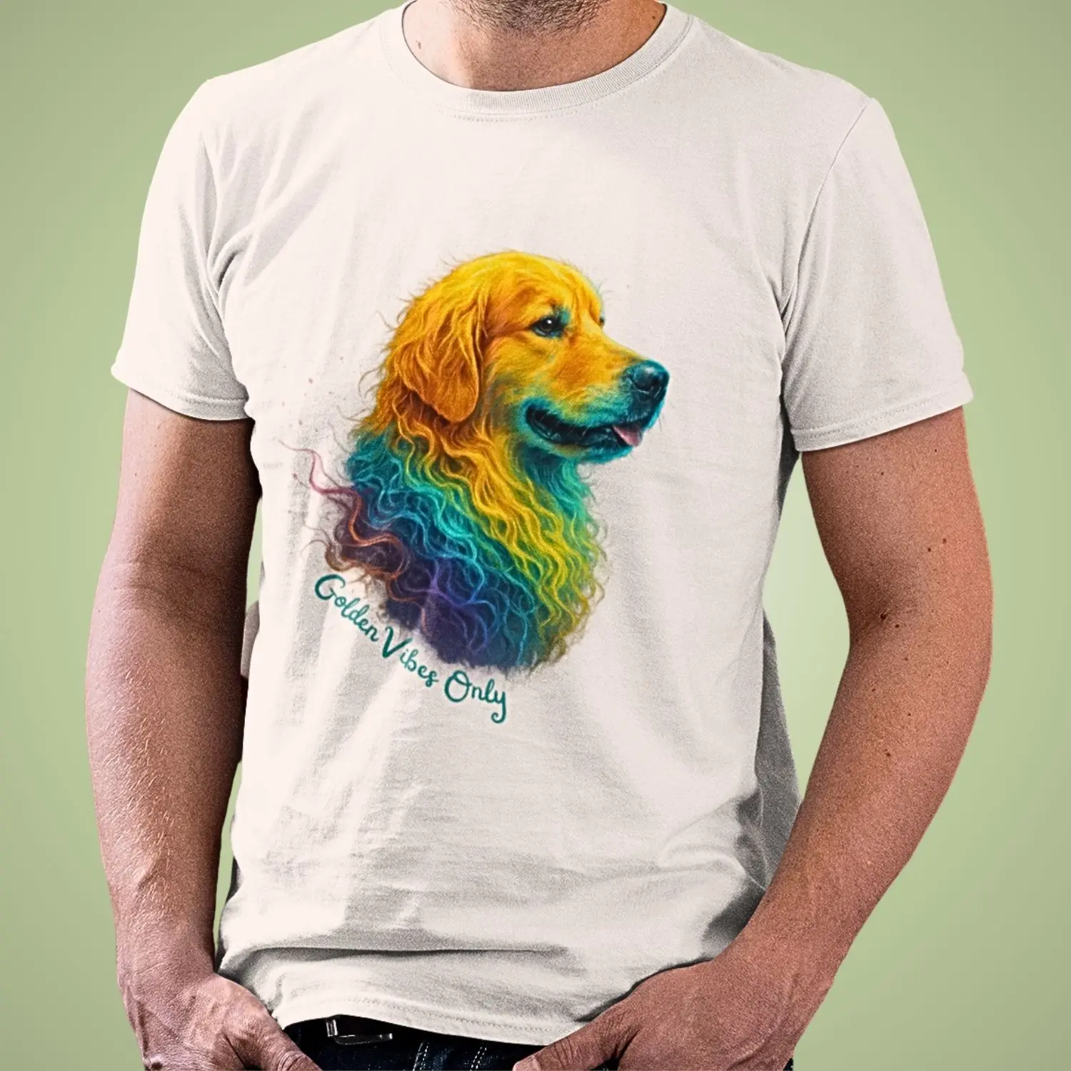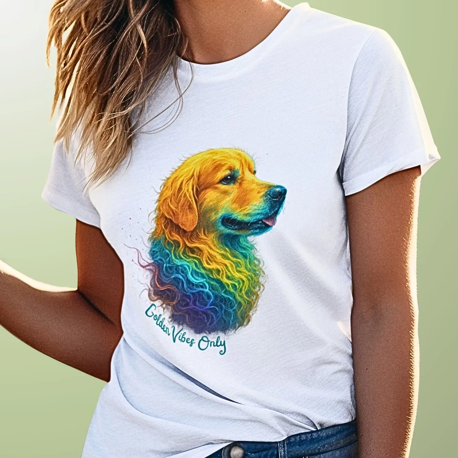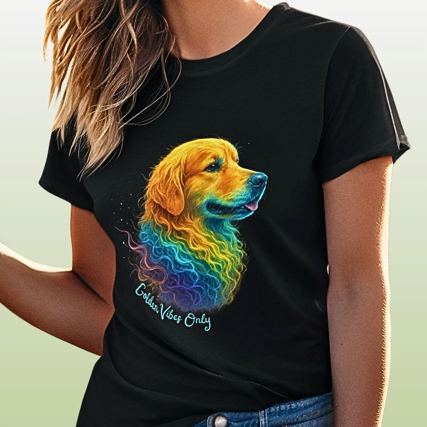 Para quem ama cães de todo o coração, a Camiseta Golden Vibes Only é mais que roupa — é declaração de amor.