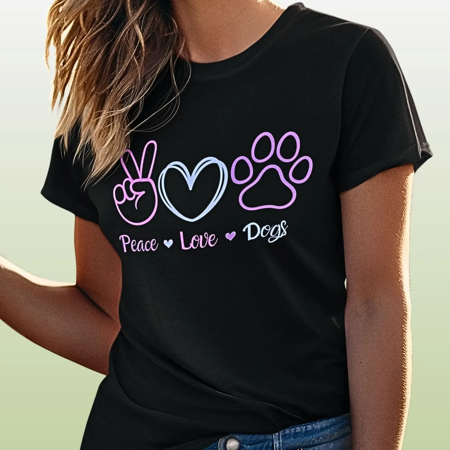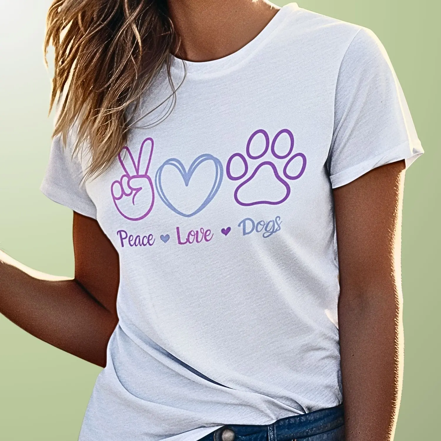 Para quem ama cães de todo o coração, a Camiseta Peace Love Dogs 2 é mais que roupa — é declaração de amor.